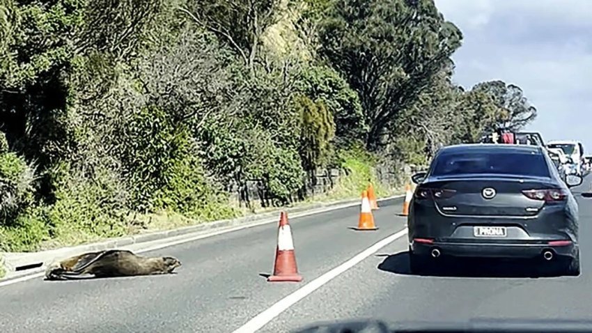 Trafiku në një qytet bregdetar australian u devijua për pak kohë të premten, kur një fokë vendosi të bënte një sy gjumë në rrugë.