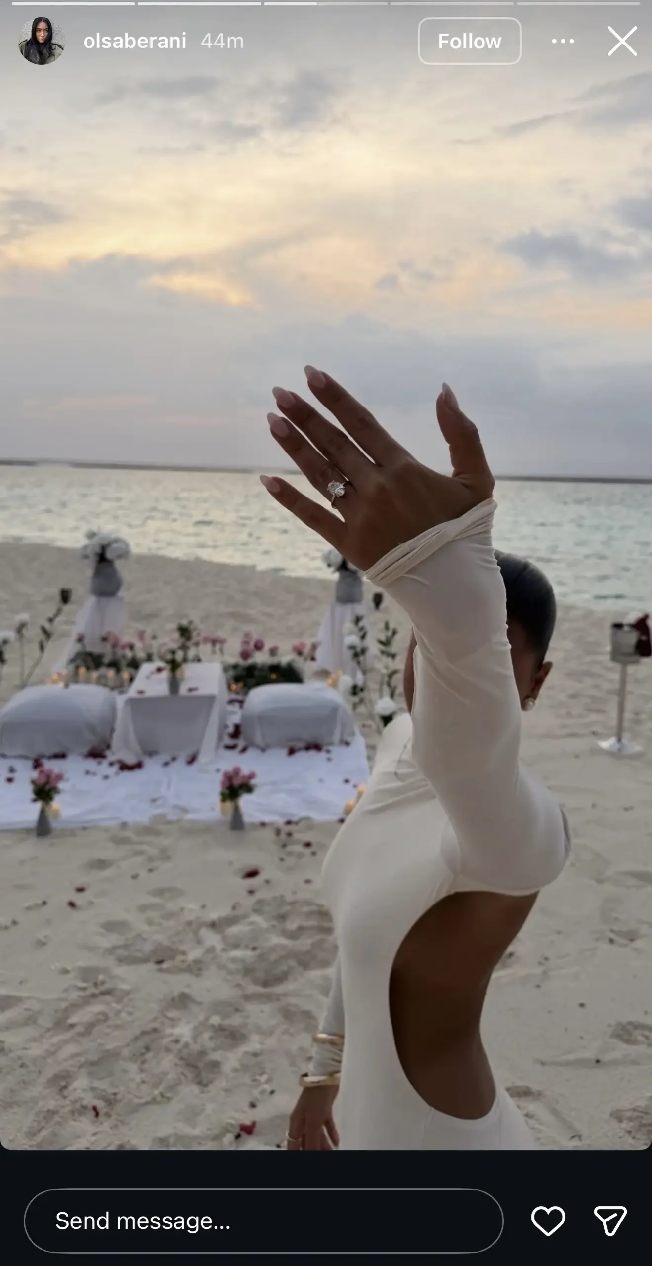 Çifti ka zgjedhur një atmosferë intime dhe larg vëmendjes së publikut për këtë moment të veçantë, i cili ka ndodhur disa ditë më parë, ndërsa fotot janë publikuar sot. Në imazhet e ndara shihet një skenë romantike buzë detit, që ka shërbyer si sfond për propozimin.