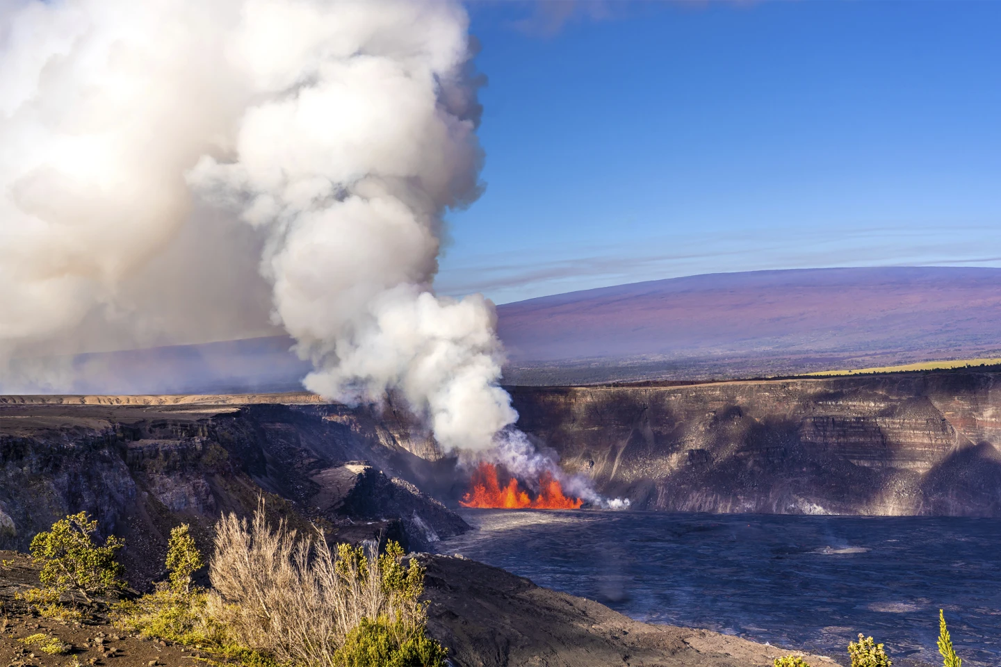 Shpërthimi i vullkanit Kilauea në ishullin e madh të Havait ka qëndruar brenda kalderës së majës së malit ,brenda Parkut Kombëtar të Vullkaneve të Havait. Asnjë shtëpi nuk u kërcënua.