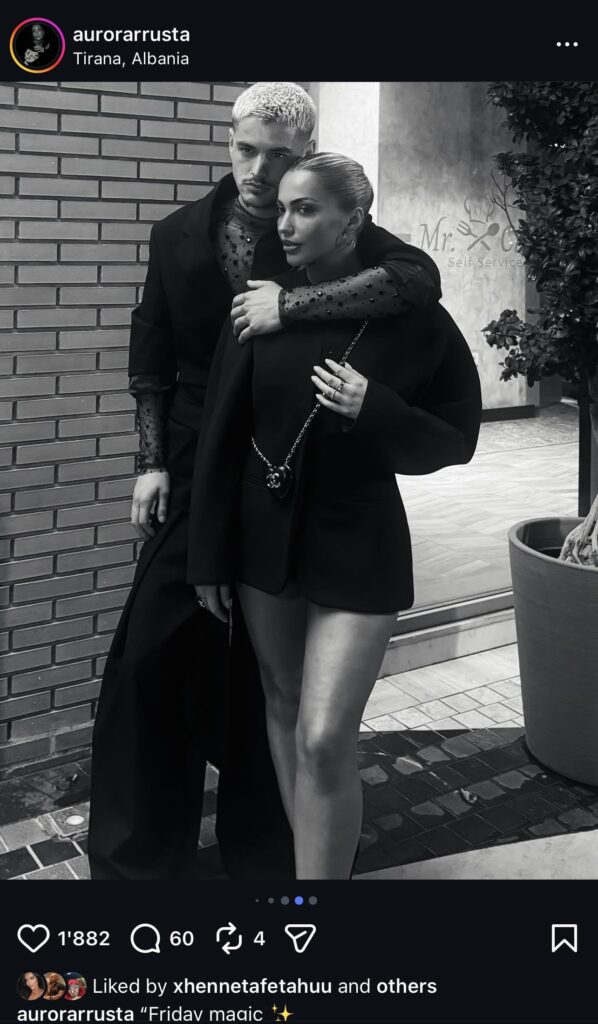 Të dy ndodhen në Tiranë, duke kaluar kohë së bashku, çka ka ngritur menjëherë pikëpyetje te ndjekësit e tyre, shkruan Indeksonline.