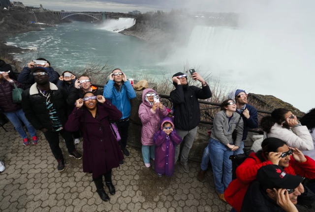 Njerëzit mblidhen për të parë eklipsin e plotë diellor nga Ujëvara e Niagarës, Ontario