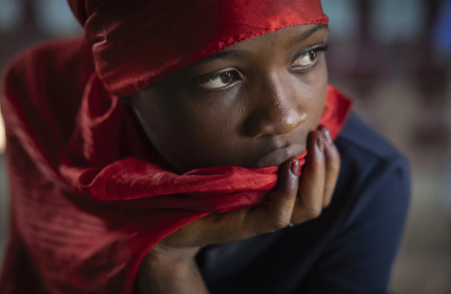Një vajzë pret në shtëpinë e familjes së të ndjerit Ousmane Sylla, i cili vdiq nga vetëvrasja brenda një prej qendrave të paraburgimit të emigrantëve në Itali, përpara mbërritjes së trupit të tij në Conakry, Guinea