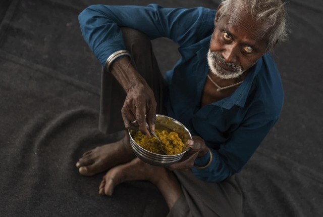 Atmaram, i cili shkon me një emër dhe u gjet duke jetuar në rrugë një ditë më parë, ha mëngjes në Saint Hardyal Educational and Orphans Welfare Society, një shtëpi për të moshuarit dhe të padëshiruarit