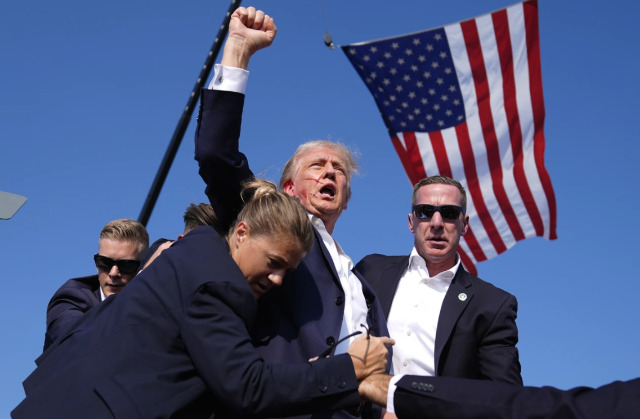 Kandidati republikan për president, ish-presidenti Donald Trump është i rrethuar nga agjentë të Shërbimit Sekret të SHBA-së pas një atentati në një tubim fushate në Butler