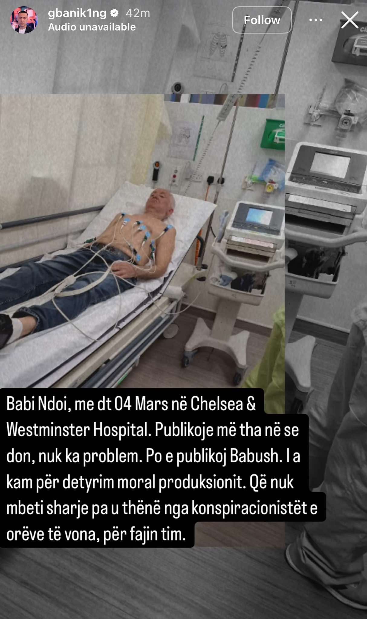 “Babai Ndoi me datë 4 mars në Chelsea & Westminster Hospital. Publikoje më tha nëse do, nuk ka problem”, nis postimi i ish-banorit.