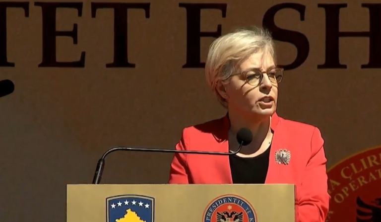 “Jo vetëm për guximin e jashtëzakonshëm që u tregua aty, jo vetëm për strategjinë e rrallë ushtarake që çojë në fitore, por sepse aty u dëshmua se liria e Kosovës nuk po kërkohej më si e drejtë morale e politike, por po mbrohej dhe po fitohej në fushëbetejë me ushtarë dhe oficerë trima, të përgatitur, liridashës deri në vetëflijim.”, ka deklaruar ajo. /Klankosova.tv