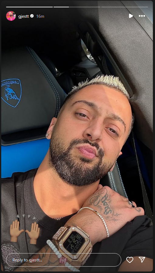 Ai gjendet në makinën luksoze të tipit “Lamborghini” ku Gjesti duket shumë i lumtur.