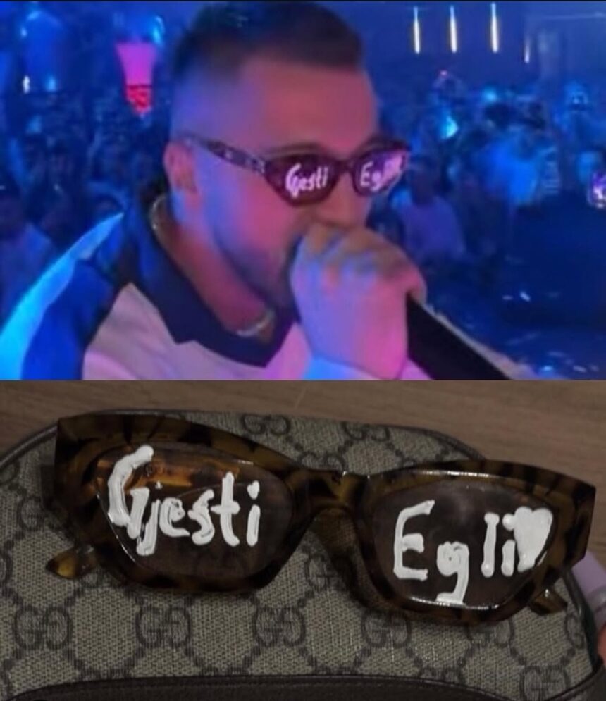 Në koncertin e mbrëmshëm në Mitrovicë, Gjesti është pritur me dashuri të madhe nga fansat, të cilët i dhuruan një palë syze të personalizuara me emrat “Gjesti” dhe “Egli”, të shkruar në secilin xham me një zemër mes tyre.
