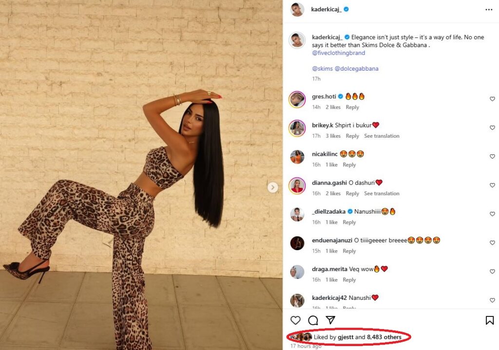 Duke hulumtuar në profilin e modeles shohim që ai ka pëlqyer postimin e saj.