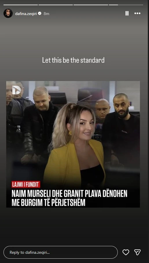 Reagimeve të mëhershme iu është bashkuar edhe këngëtarja Dafina Zeqiri, e cila përmes rrjeteve sociale ka dhënë një mesazh të shkurtër, duke theksuar nevojën për standarde të qarta në trajtimin e rasteve të tilla.
