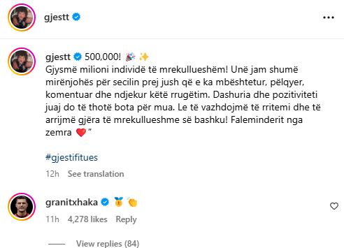 Në postimin e fundit të këngëtarit, Graniti e ka quajtur kampion.