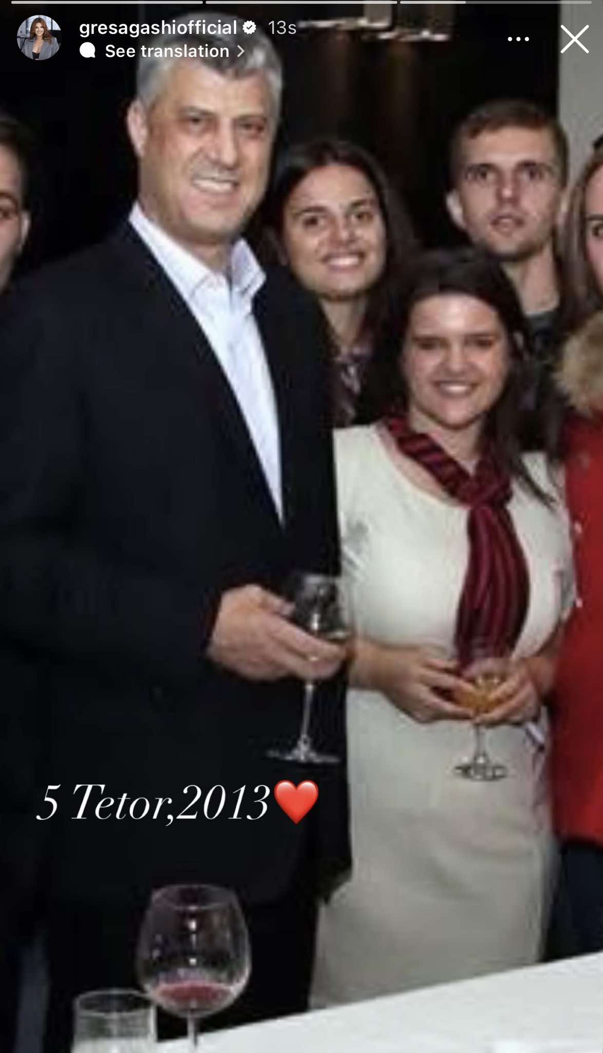 Në një postim të publikuar në Instagram, Gresa ka shpërndarë një fotografi nga një takim me ish-presidentin e Kosovës, Hashim Thaçi. Në imazh, ajo shihet në një ambient zyrtar së bashku me Thaçin, në atë kohë Kryeministër i vendit, shkruan “Kosovarja”.