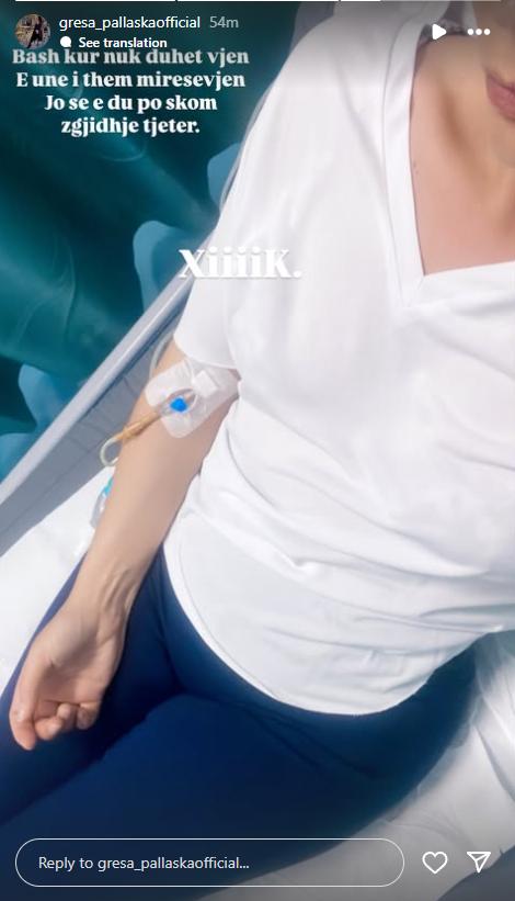Por minuta me parë ajo ka publikuar një foto në llogarinë e saj duke treguar se po përballet me një gjendje jo të mirë shëndetësore, ku është parë duke marrë trajtim mjekësor, shkruan “Kosovarja”.