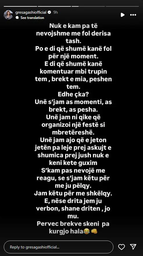 Më anë të një shkrimi të gjatë ajo shkroi që “nuk kanë pasur nevojë të reagojnë se nuk është për me ju pëlqy”.