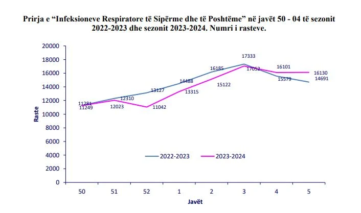 Afro 16 mijë persona janë të prekur nga infeksionet respiratore javën e fundit. Epidemiologet e vlerësojnë si situatë të qëndrueshme të kurbës, e cila nuk ka vijuar zbritjen nga java e mëparshme.
