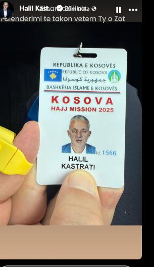 Lajmin e ka bërë të ditur vetë Kastrati përmes një postimi në rrjetet sociale, ku ka ndarë kartelën identifikuese të Haxhit 2025, të lëshuar nga Bashkësia Islame e Kosovës. “Falënderimi të takon vetëm Ty o Zot”, ka shkruar ai, duke shprehur mirënjohje dhe emocion për këtë moment të rëndësishëm shpirtëror.