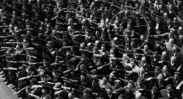 Qindra punëtorë japin përshëndetjen naziste, të gjithë përveç njërit.