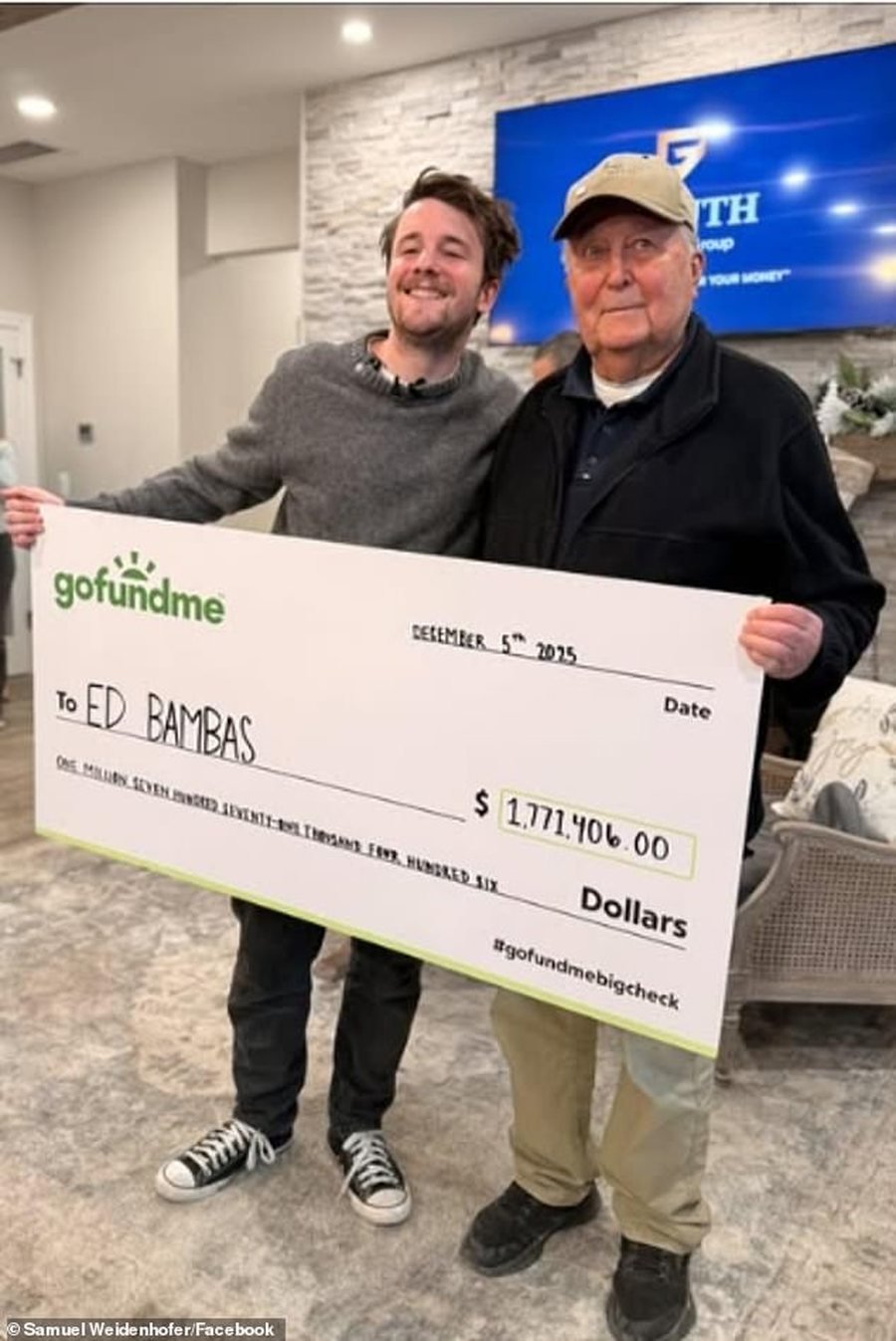 Më 6 dhjetor, në një ceremoni emocionuese të mbajtur në Foguth Financial Group në Brighton, Michigan, Weidenhofer i dorëzoi Bambasit një çek gjigant me shumën e mbledhur: plot 1 770 000 dollarë.