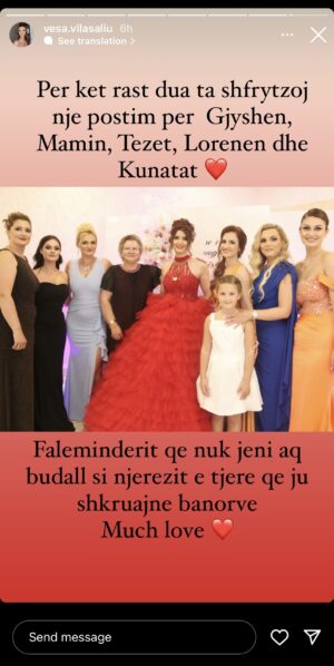 Ndërkohë Vesa pas mesazheve ka publikuar foto me gjyshen, mamin, tezen dhe kunatat ku shkruan: “Faleminderit që nuk jeni aq budallenj si njerëzit e tjerë që ju shkruajnë banorëve”.
