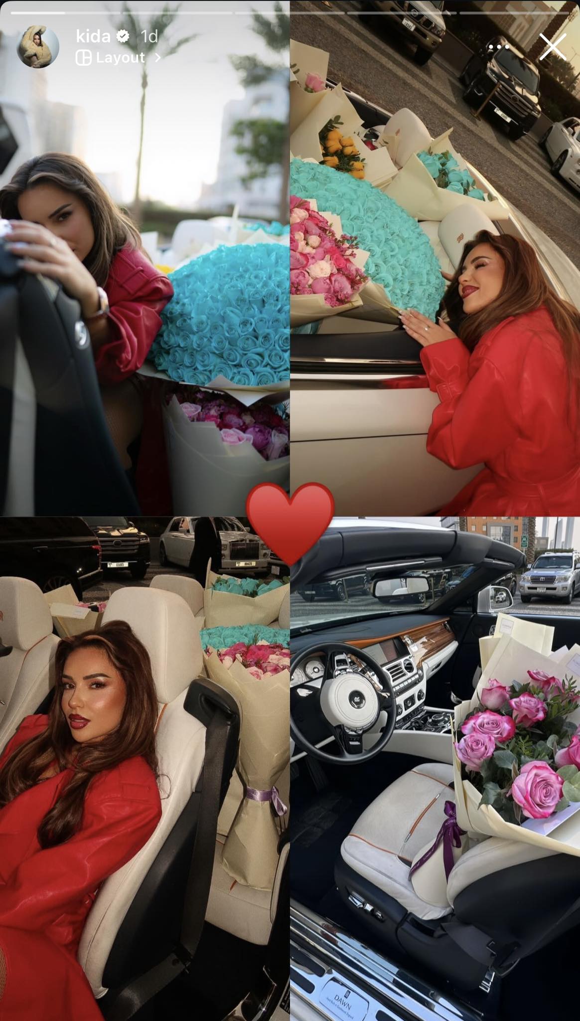 Së fundi, ajo ka publikuar një fotografi në Instagram ku shihet brenda një veture të mbushur me lule. Lulet janë dhuratë nga i fejuari, shkruan “Kosovarja”.