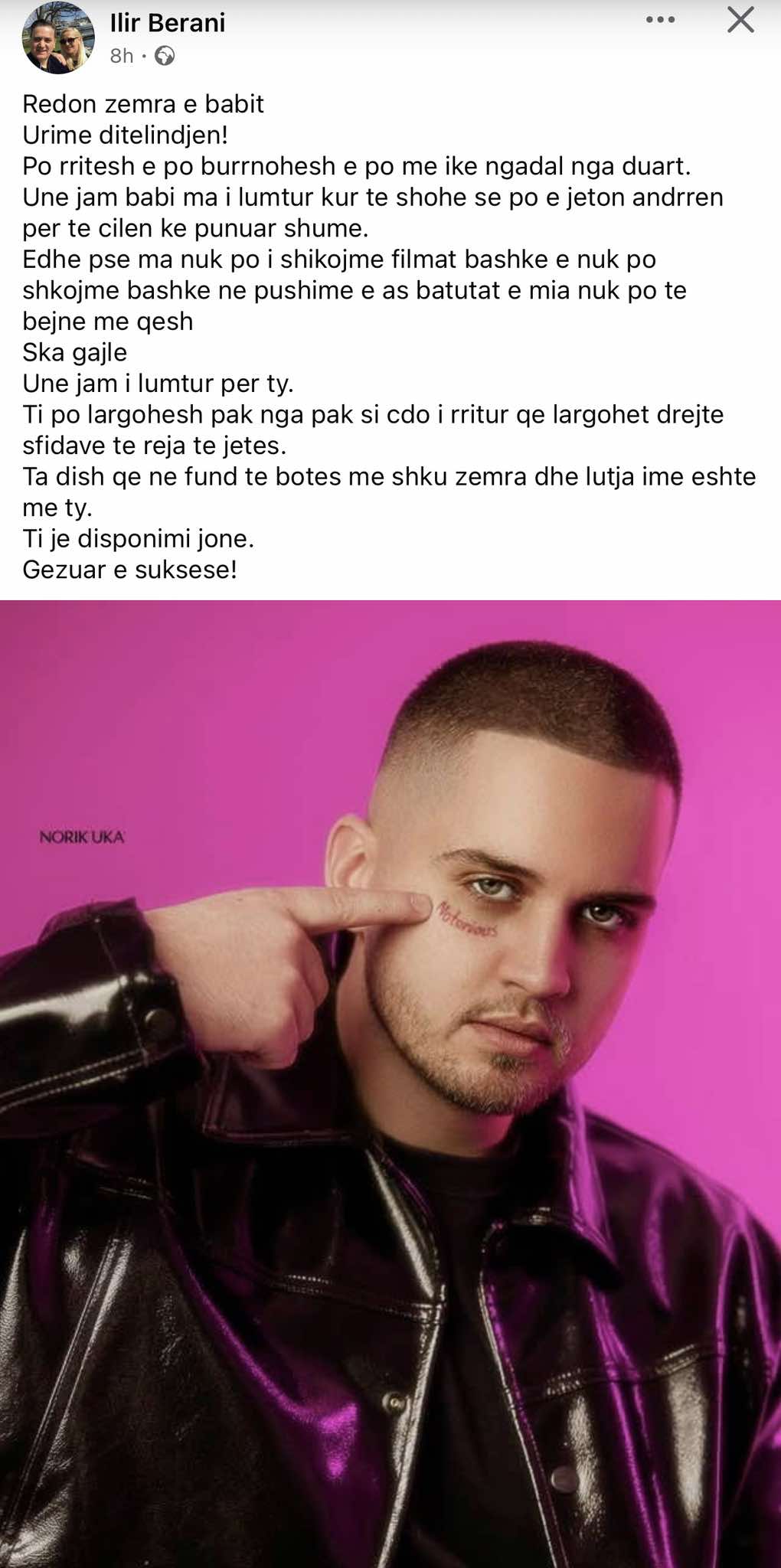 Ilir Berani, ka uruar me rastin e ditëlindjes të birin, Redonin, shkruan “Kosovarja”.
