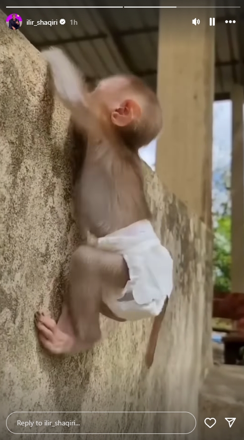 Balerini ka publikuar në InstaStory një video të një majmuni që tenton të kacavirret në mur për t’u larguar, duke lënë të kuptohet se është një ironi e drejtpërdrejtë ndaj veprimit të Gjestit.
