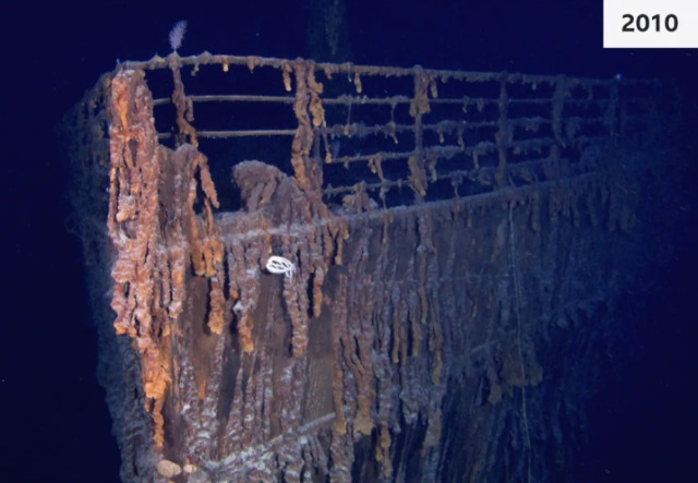Titaniku po dëmtohet dhe gërryhet nga uji përgjatë viteve. Një ekspeditë e re ka zbuluar ndryshime në strukturën e anijes, kryesisht në parmakun e Titanikut, ku një pjesë e kangjellave të saj mungojnë.