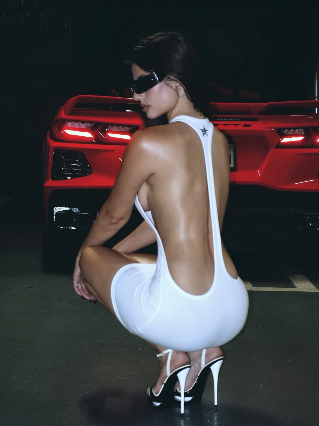 Me pozën e saj përkrah një makine luksoze, ajo duket se bashkon pasionin për modën dhe shpejtësinë, duke nxjerrë në pah një anë tjetër të personalitetit të saj magjepsës.