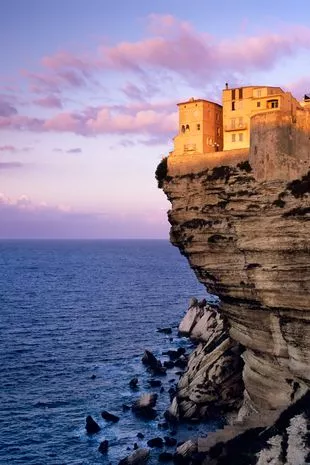 Porti më jugor i ishullit, Bonifacio tërheq vëmendjen me citadelën në majë të shkëmbit.