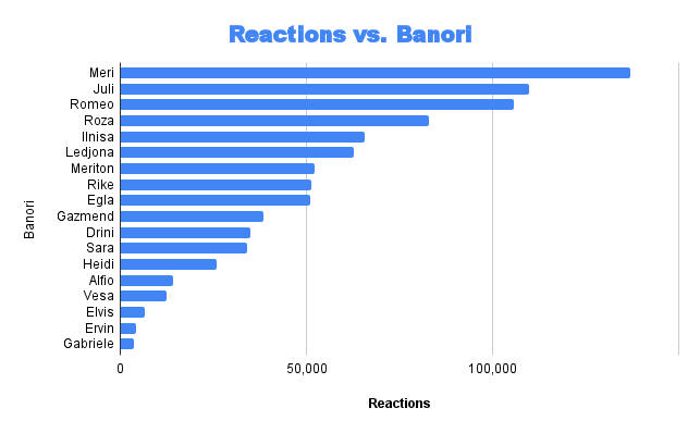 Përmes një metodologjie inovative, Terra ka analizuar numrin dhe natyrën e “reactions” të përdoruesve ndaj postimeve të ndryshme, me një fokus të veçantë në mënyrën sesi reagimet ndahen mes banorëve të shtëpisë kur përmenden në të njëjtin postim.