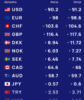 Euro sot blihet me 98 lekë, ndërsa në shitje me 98.6 lekë. aundi britanik sot blihet me 116.4 lekë dhe shitet me 117.6 lekë.