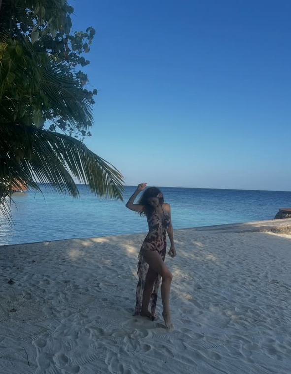Në njërën postoi një selfie ndërsa në imazhin e dytë postoj komplet trupin ku shihet duke shijuar vendin ekzotik.