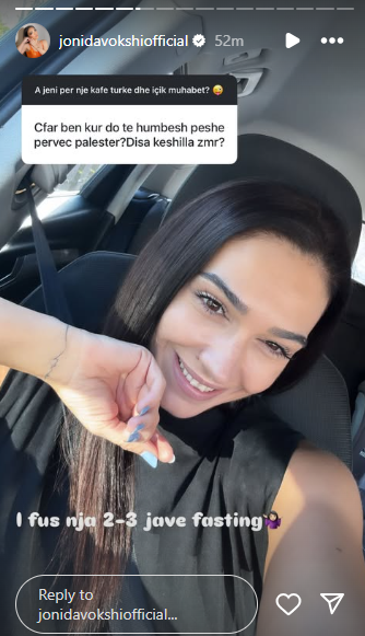 Në përgjigjen e saj, Jonida ka zbuluar një nga metodat që ndjek për të rënë në peshë I fus 1-3 javë fasting,” është shprehur ajo, duke lënë të kuptohet se ndjek periudha agjërimi si pjesë e stilit të saj të jetesës, shkruan “Kosovarja”.