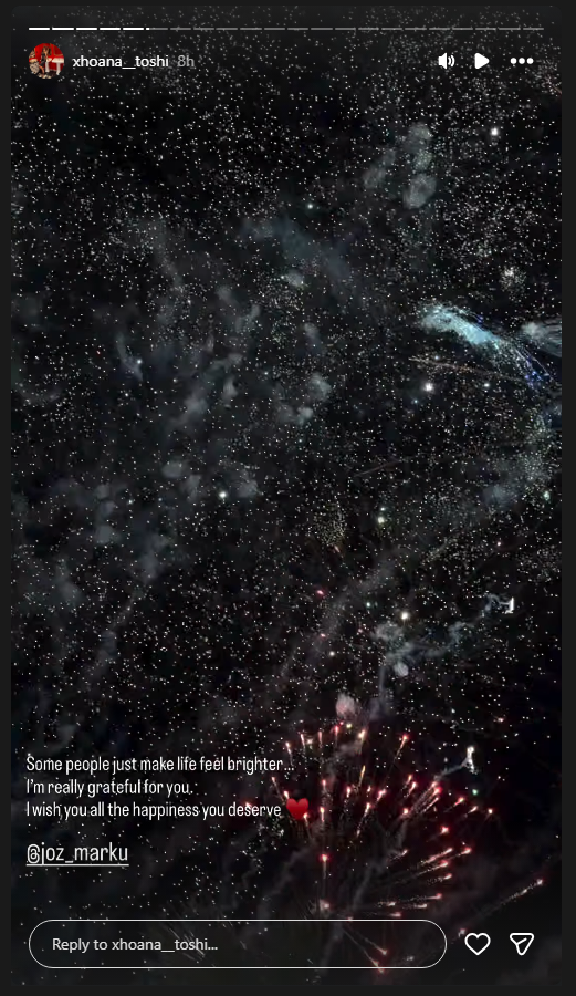“Disa njerëz thjesht e bëjnë jetën të ndihet më e ndritshme. Jam vërtet mirënjohëse për ty”! Të uroj gjithë lumturinë që meriton @joz_marku”!