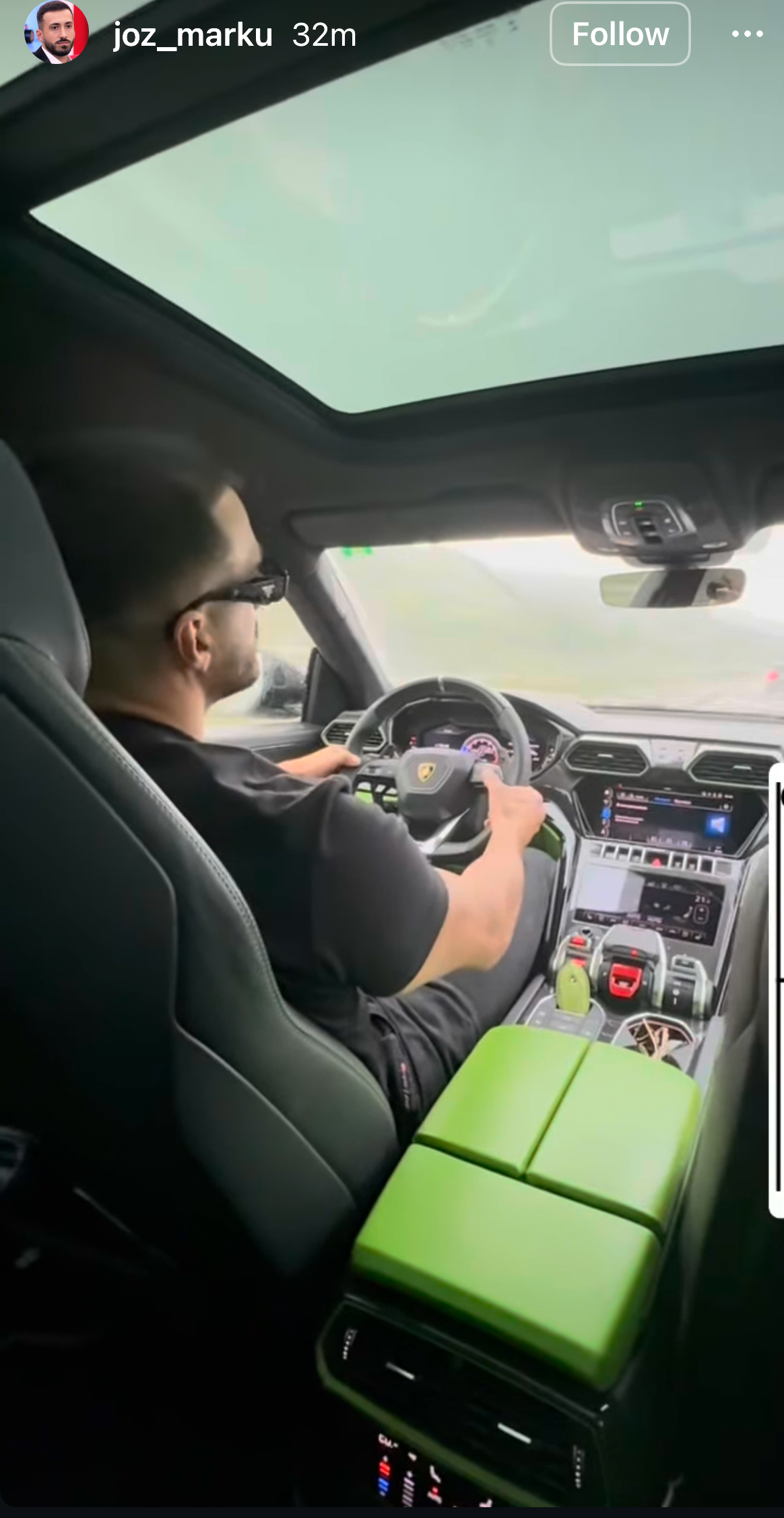 Jozi publikoi një video ku shihet duke vozitur një veturë të markës Lamborghini, çka është interpretuar nga ndjekësit si një “diss” i koduar ndaj Gjestit.