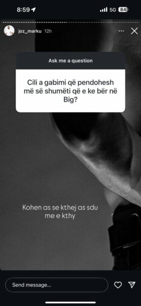 Ndërsa një tjetër e pyet: “Cili është gabimi që pendohesh më së shumti që ke bërë në ‘Big’?”.