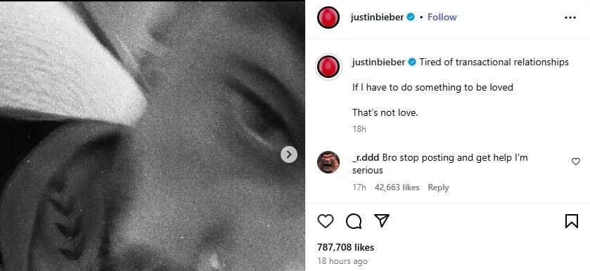 Këngëtari i njohur, Justin Bieber, ka ndarë në rrejte sociale një mesazh të pa kuptueshëm rreth marrëdhënieve.