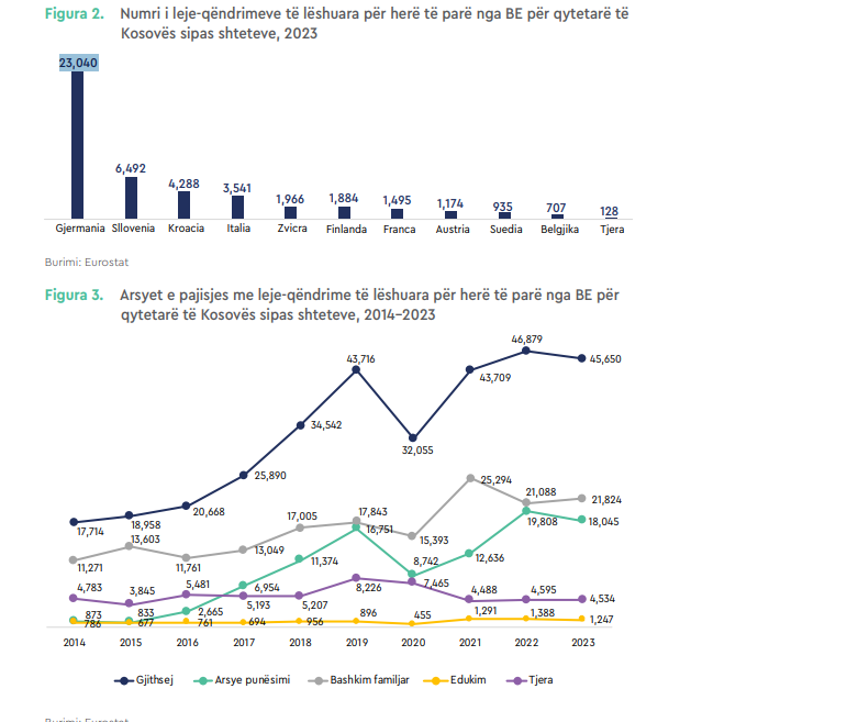 Në vitin 2023, kohë të cilën e përfshin raporti, janë 45 mijë e 560 kosovarë të cilët janë pajisur me leje qëndrimi për herë të parë.