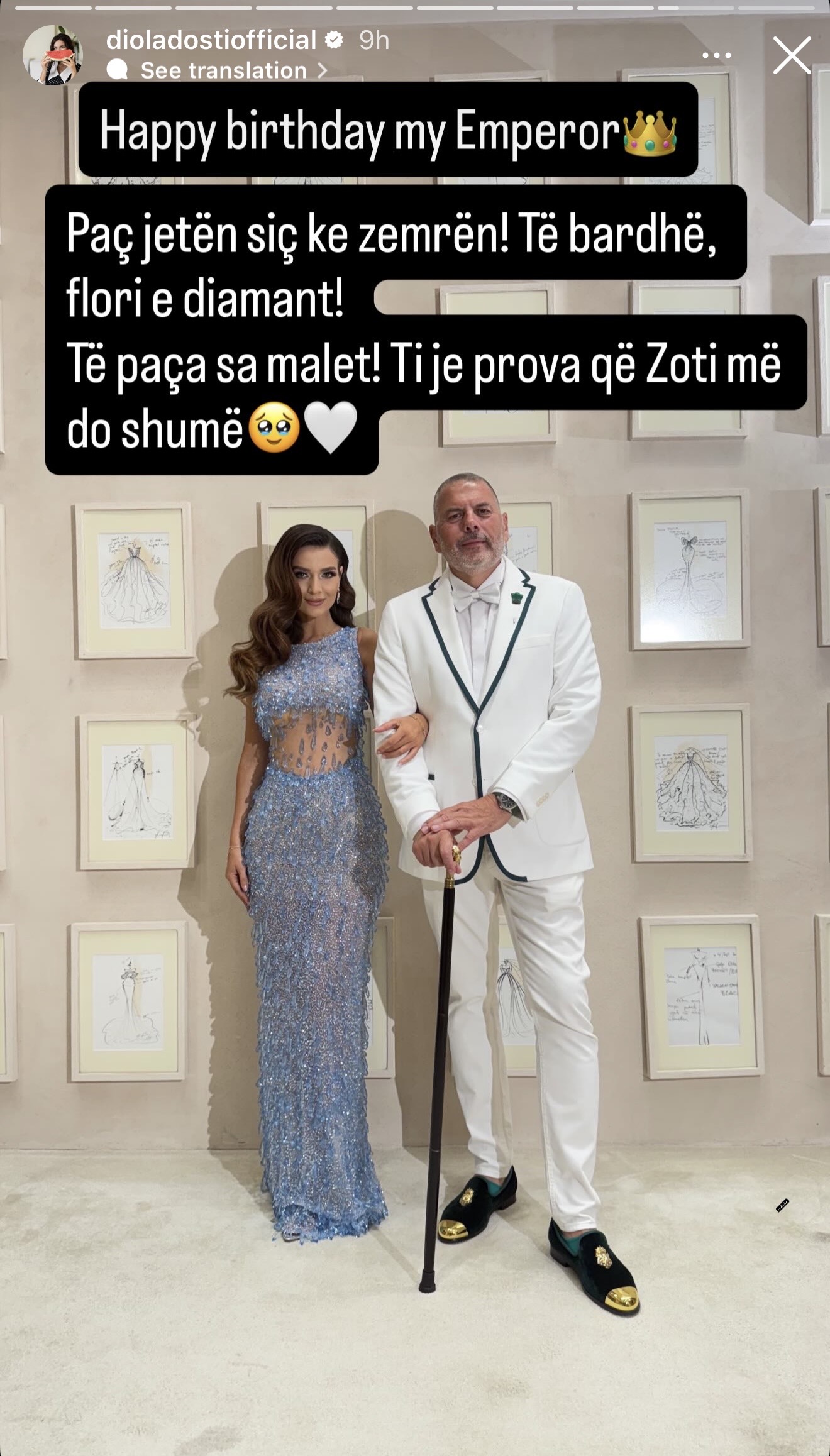 Përmes një fotografie të ndarë në Instastory, ku dyshja shfaqet me plot stil dhe mjaft elegantë, Diola nuk i ka kursyer fjalët e mëdha të dashurisë.
