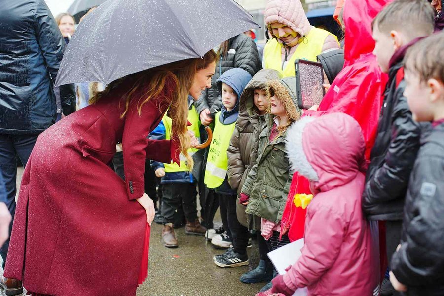 Catherine, princesha e Uellsit theu protokollin mbretëror duke përshëndetur një grup të rinjsh. Pasi ajo dhe princi William mbërritën në Uells të enjten, princesha e Uellsit takoi një grup fëmijësh me përqafime.