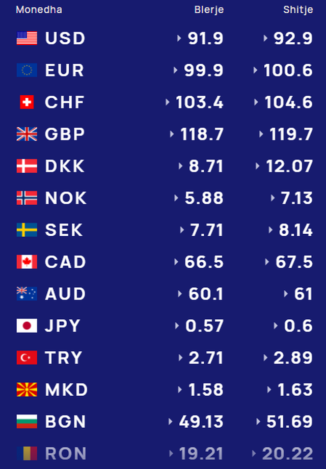 Më poshtë, po sjellim të dhënat e këmbimin valutor, për të gjitha monedhat e huaja: