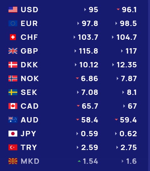 Ndërkohë monedha evropiane euro do blihet me 97.8 lekë dhe do shitet me 98.5 lekë.