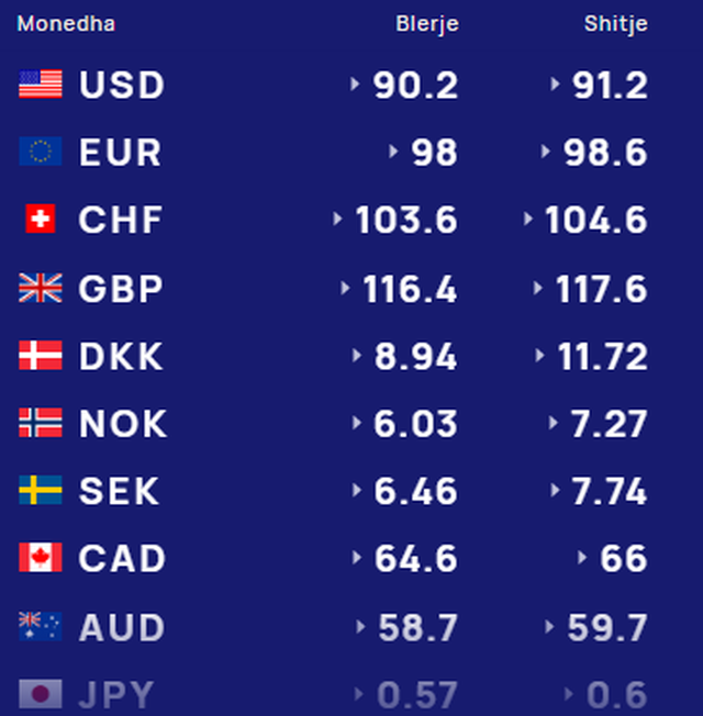 Më poshtë, po sjellim të dhënat e këmbimin valutor, për të gjitha monedhat e huaja: