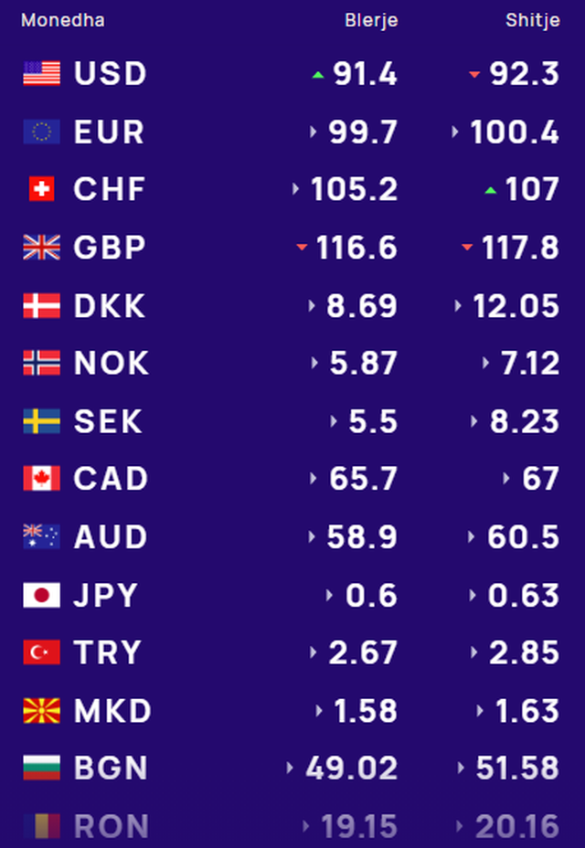 Më poshtë, po sjellim të dhënat e këmbimin valutor, për të gjitha monedhat e huaja: