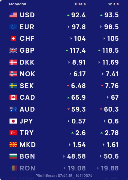Ndërkohë monedha evropiane euro do blihet me 97.8 lekë dhe do shitet me 98.5 lekë.