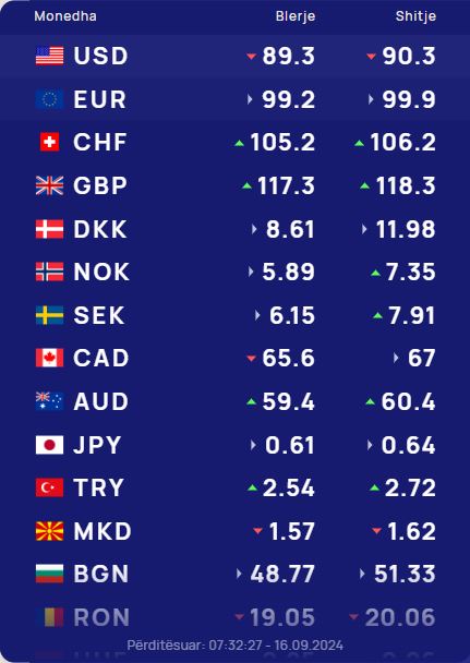 Ndërsa paundi britanik do blihet me 117.3 lekë dhe do shitet me 118.3 lekë.