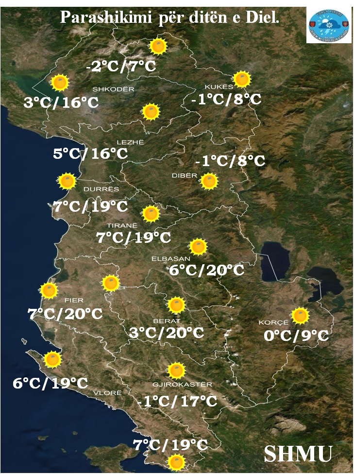 Sipas SHMU-së, moti parashikohet i kthjellët në të gjithë territorin e vranësira të pakta kalimtare.
