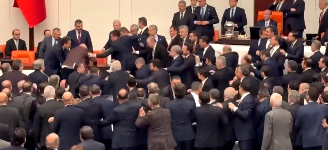 Deputetët e CHP-së u përpoqën të pengonin Gurlekun t’i afrohej foltores për të bërë betimin në seancën plenare të parlamentit, çka çoi në shtyrje dhe grushte mes anëtarëve të dy partive, shkruan A2CNN.