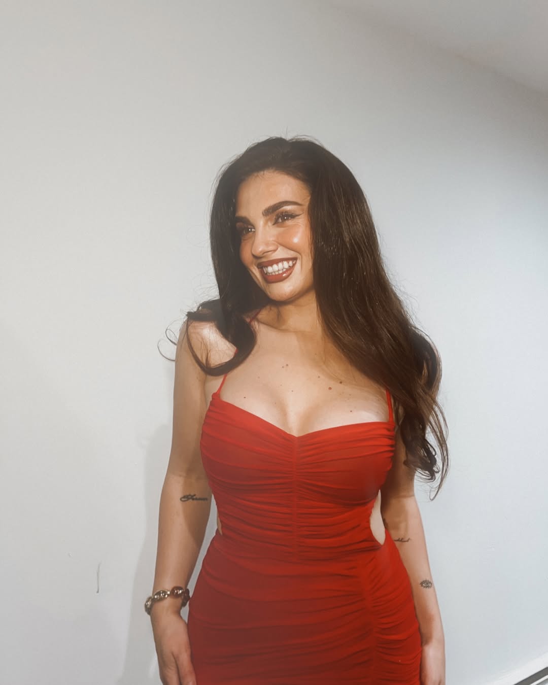 Triksa zgjodhi të shkëlqej me një fustan të kuq me prerje tejet unike që i shfaqte linjat përfekte që ka.
