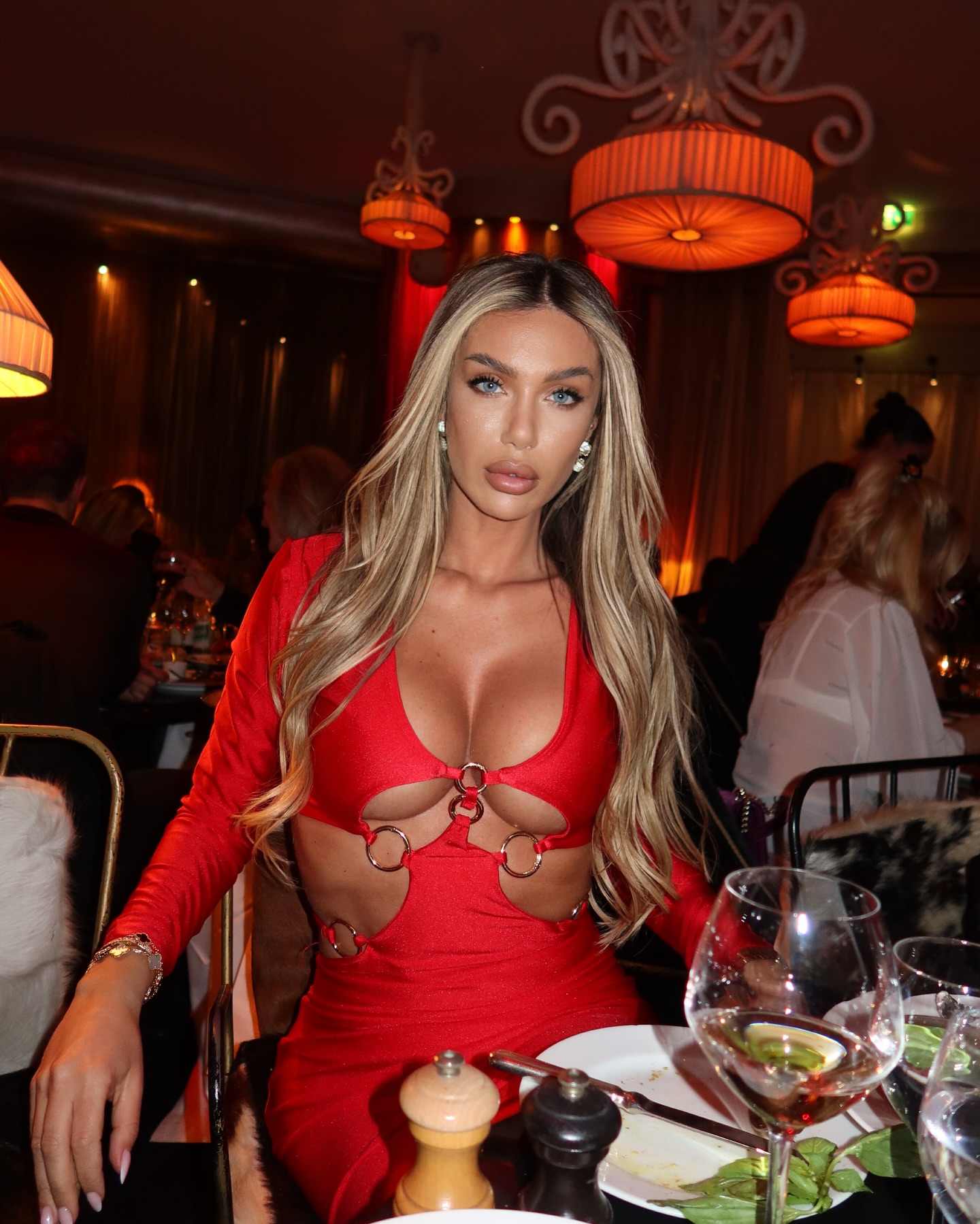 Ajo që morri gjithë vëmendjen është modeli i fustanit tek gjoksi që po i mbanë të lidhur gjoksin duke e treguar format trupore.